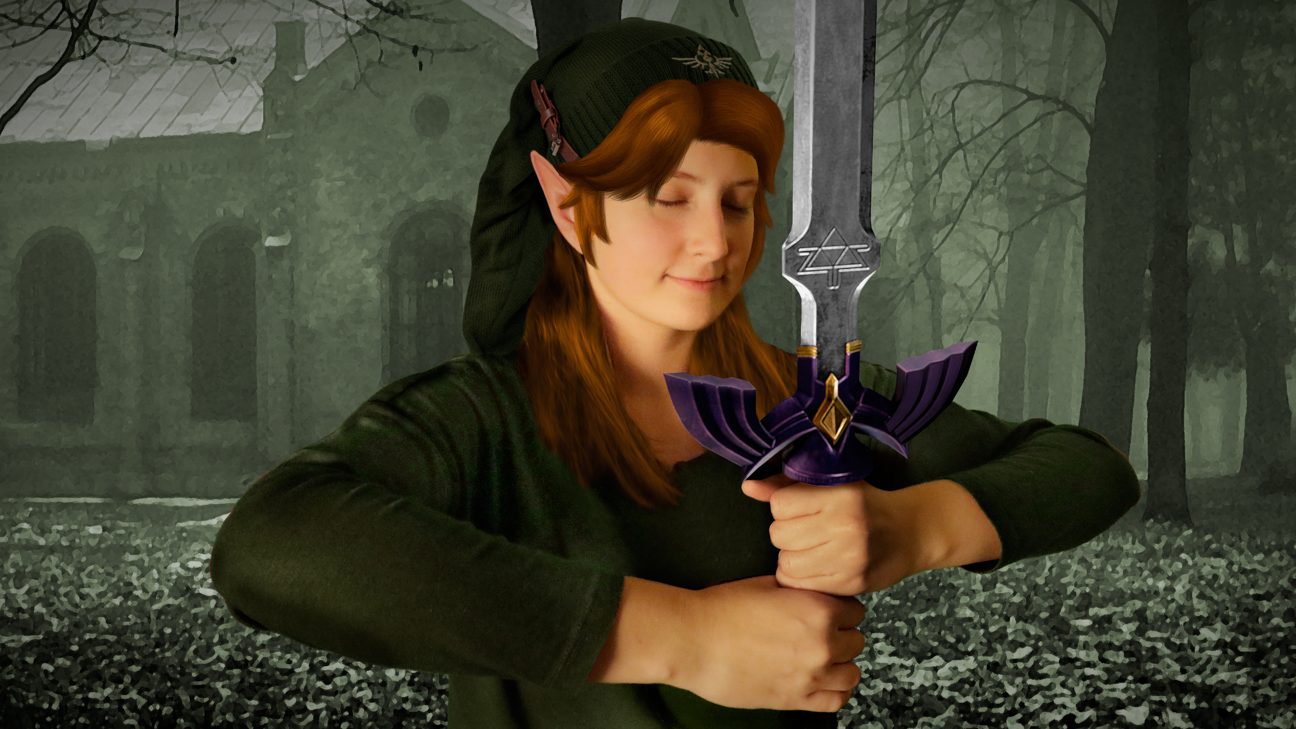 Footage tvorby tohto autoportrétu nemám, takže vám radšej porozprávam jeho príbeh. Ako to už býva, koncept na toto cvičenie som zmenila asi xkrát, jeden z prvých návrhov bol napr. ja ako "matka zem". Nakoniec som sa však rozhodla že budem verná svojmu milovanému Linkovi a spracujem niečo ako jeho cosplay. Poprosila som Nikitu a Aďu či mi pomôžu spraviť fotku, samozrejme sme sa pri tom veľmi zabávali až stihlo zapadnúť slnko s čím som sa musela na popasovať neskôr. Potom som niečo nakreslila, nejaké vstupy som prebrala a všetko som to scapkala vo Photoshope. Bol to naozaj nekonečný proces pri ktorom som potila krv ale teraz môžem aspoň povedať že som spokojná. Dajme tomu.